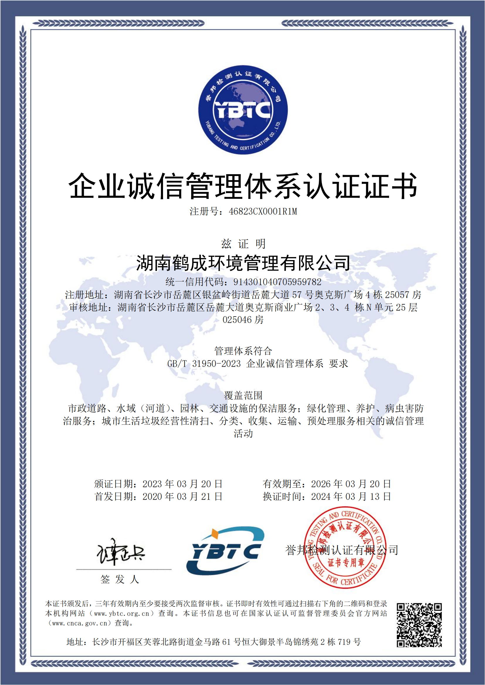 湖南鹤成环境理有限公司,成立2013q?月,原名长沙鹤成景观实业发展有限公司Q经q近几年的飞速发?各方资金的引?加之各界C会力量的大力支?我司已发展成Z家实力雄厚的专业城乡环境化一体化q营商?br/>       目前公司总部自有办公面积500多^方米,座落在湖南省长沙市岳麓区奥克斯广场,现有员工3000余hQ其中管理h?26人,技术h?5人,公司配备行业优质的清z机械设备,现有多功能机扫R、大型洗扫R、自卸式垃圾清运车、高压清zR、高压水车、垃?qx)车、压~垃圾R、高温高压洗地机、新能源车、E查R{?00余辆。ؓ方便理公司环卫车辆、优化出行\Uѝ高效指导环卫工作,公司搭徏了鹤成环境智慧环卫管理云q_Q对我司车辆q行数字化、专业化、精l化理。公怸要经营市攉K路清z维护、物业清z维护、园林绿化工E服务、风景园林工E设计与施工、交通设施的清洗l护、城市生zd?攉q输、绿化管理等服务目?br/>